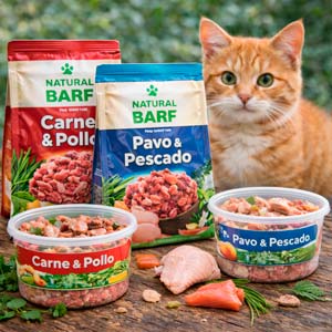 La alimentación natural para gatos apuesta por recetas con ingredientes frescos y mínimamente procesados. Dentro de esta categoría se encuentra la dieta BARF para gatos, basada en alimentos crudos biológicamente apropiados.